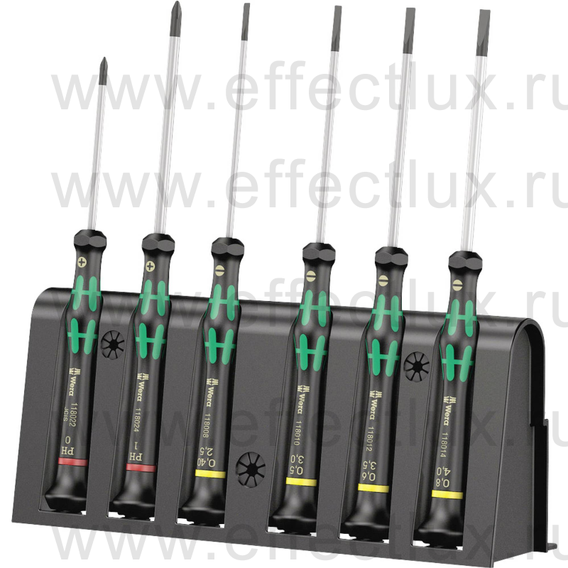 Каталог > WERA Инструменты для профессионалов > WERA Отвёртки > WERA Отвёртки и наборы отвёрток серии Kraftform Micro > WERA Наборы отверток Kraftform Micro > WERA Kraftform Micro 2035/6 B Набор отвёрток для электронщиков SL+PH+подставка, 6 предметов WE-118152