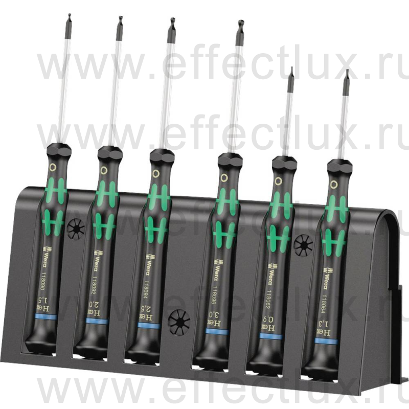 Каталог > WERA Инструменты для профессионалов > WERA Отвёртки > WERA Отвёртки и наборы отвёрток серии Kraftform Micro > WERA Наборы отверток Kraftform Micro > WERA Kraftform Micro 2052/6 Набор отвёрток под внутренний шестигранник для электронщиков +подставка, 6 предметов WE-118156