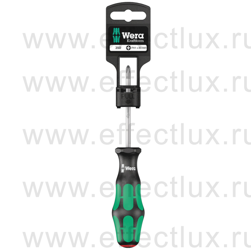 Каталог > WERA Инструменты для профессионалов > WERA Отвёртки > WERA Отвертки и наборы отверток 300 серии > WERA Серия 350 PH Kraftform Plus Отвёртки крестовые Phillips, профиль стержня круглый > WERA Kraftform Plus 350 PH1 SB Отвёртка крестовая Phillips PH1х80 мм. WE-100051