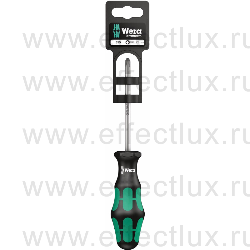 Каталог > WERA Инструменты для профессионалов > WERA Отвёртки > WERA Отвертки и наборы отверток 300 серии > WERA Серия 350 PH Kraftform Plus Отвёртки крестовые Phillips, профиль стержня круглый > WERA Kraftform Plus 350 PH2 SB Отвёртка крестовая Phillips PH2х100 мм. WE-100052
