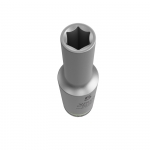 Торцевая головка длинной формы для работы в ручном и машинном режимах с приводом 1/4" (стандарт: ISO 2725-ч.3), с канавкой под шариковый фиксатор; для винтов и гаек с наружным шестигранником. Для работы в ручном и машинном режимах (неударного действия), в том числе для деталей в глубоких отверстиях и выступающих резьбовых шпилек. С идентификатором инструментов Take it easy: цветовая кодировка размера для простого и быстрого отбора нужного инструмента. Надёжный контакт при хвате даже маслянистыми руками. Шестигранный профиль служит для передачи больших усилий и воздействует на грани гайки или головки винта меньше, чем профиль в форме двойного шестигранника. Кроме того, трещотки с тонким механизмом зацепления благодаря малому углу возврата делают использование профиля с двойным шестигранником излишним даже при работе в ограниченном пространстве.