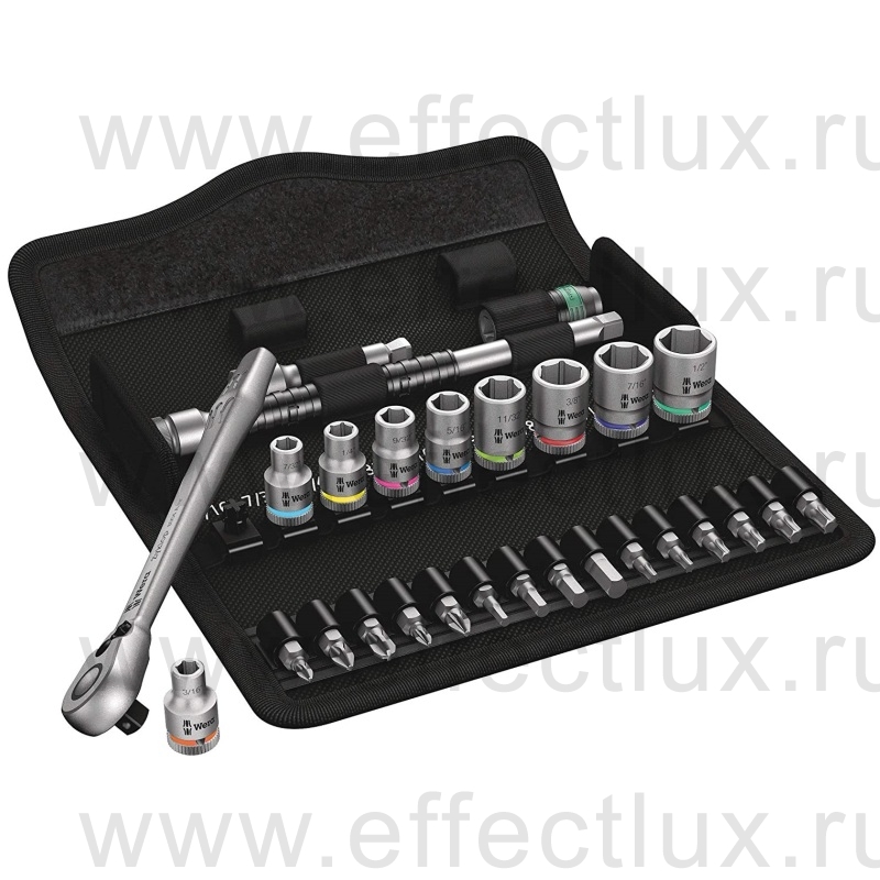 WERA 8100 SA 11 Zyklop Metal - набор с трещоткой, переключение реверса, привод 1/4", дюймовый, 28 предметов WE-004021