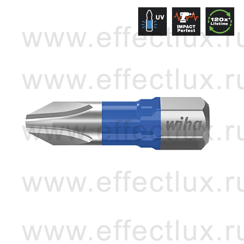 Пластиковая оболочка на торсионной зоне светится в UV-лучах, что облегчает поиск биты. Увеличенный до 120 раз срок службы (по сравнению со стандартными битами Wiha).