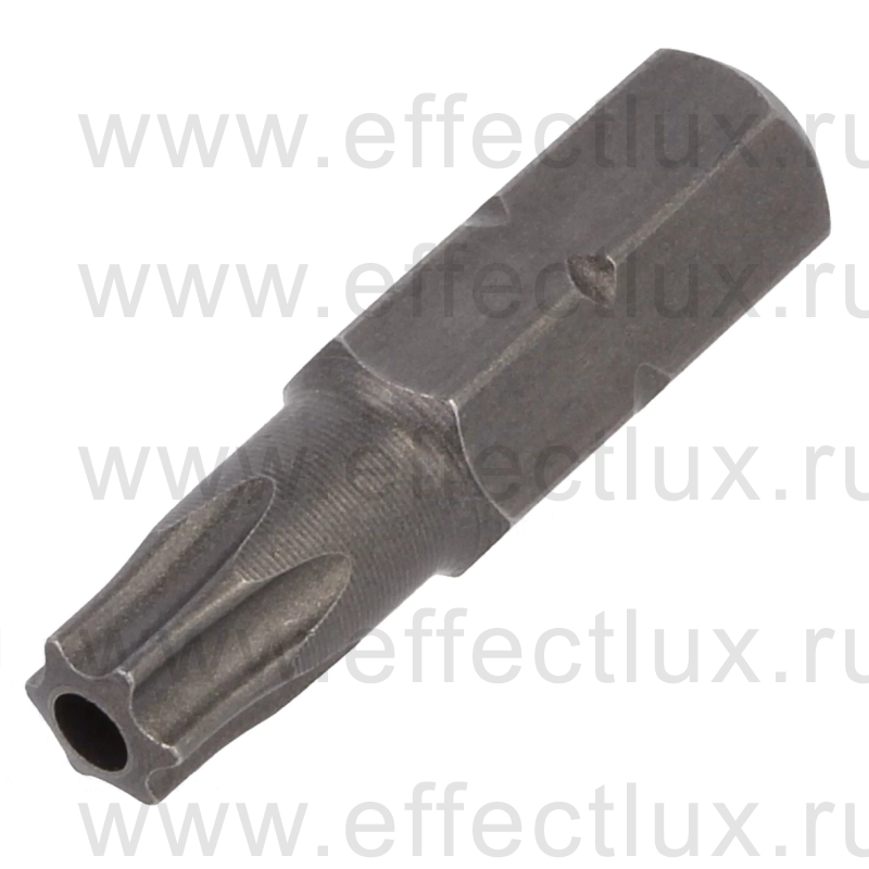 Отверстие в наконечнике биты для стопорных винтов TORX® Tamper Resistant.