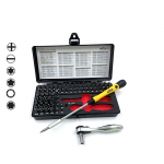 При изготовлении моделей, в электронике и точной механике требуется очень аккуратная работа, чтобы не повредить небольшие резьбовые соединения. Микро-разрядный набор ESD предлагает идеальное базовое оборудование для этих областей применения. Полный набор бит охватывает все распространенные небольшие размеры профилей, которые необходимы для тонкой работы по завинчиванию и развинчиванию мелких элементов. Биты надежно и аккуратно упакованы в прочную и компактную коробку. Ручка для точного навинчивания ESD изготовлена в соответствии с международным стандартом IEC 61340-5-1 и, таким образом, гарантирует максимальную защиту электронных компонентов. Обладая поверхностным сопротивлением 10⁶ - 10⁹ Ом, она контролируемо и безопасно рассеивает электростатическую энергию. Кроме того, в комплект входит храповик, который обеспечивает мощное завинчивание, а также тонкую обработку благодаря точному зацеплению. Благодаря углу поворота всего в 5°, храповик идеально подходит для использования в ограниченном пространстве.