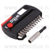 Коробка из ударо-вязкого, армированного стекловолокном полиамида – прочного в течение длительного времени. Элемент зажатия биты, с возможностью поворота на 180°. Отдельный откидной элемент для магнитного держателя бит.