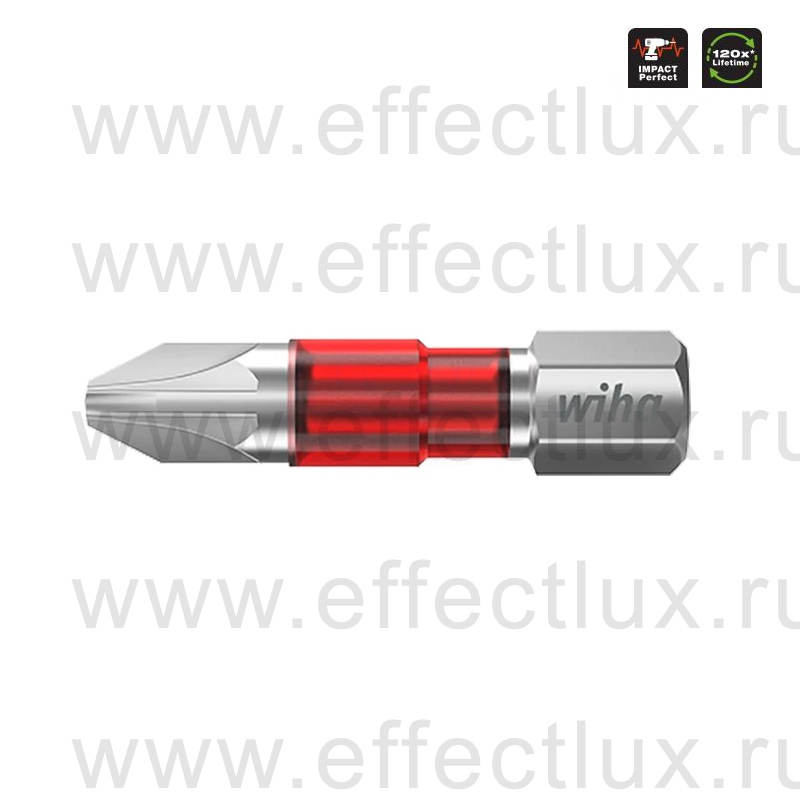 Пластиковая оболочка на торсионной зоне светится в UV-лучах, что облегчает поиск биты. Увеличенный до 120 раз срок службы (по сравнению со стандартными битами Wiha).