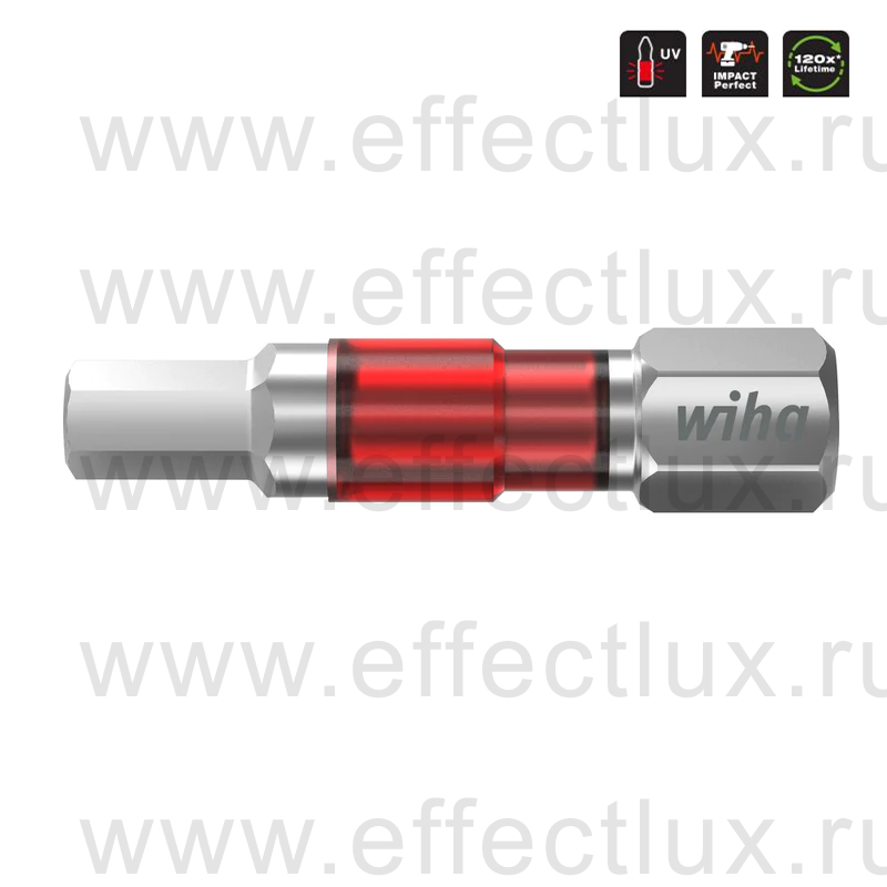 Пластиковая оболочка на торсионной зоне светится в UV-лучах, что облегчает поиск биты. Увеличенный до 120 раз срок службы (по сравнению со стандартными битами Wiha).