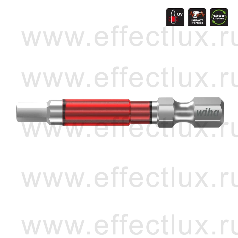Пластиковая оболочка на торсионной зоне светится в UV-лучах, что облегчает поиск биты. Увеличенный до 120 раз срок службы (по сравнению со стандартными битами Wiha).