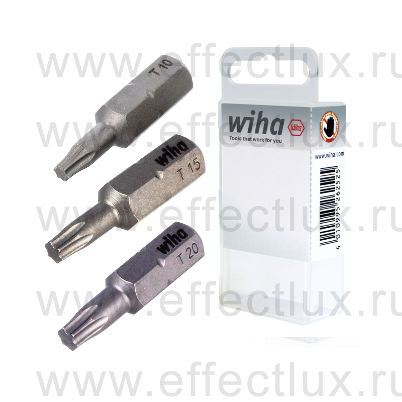 WIHA 7015 Z T10 T15 T20 3 Набор бит TORX® T10, T15, T20 Standard 25 мм. 1/4" в пластиковой коробке 3 шт.
