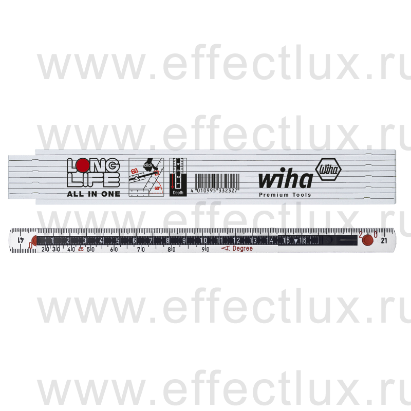 Каталог > WIHA Профессиональный ручной инструмент > Измерительный инструмент > WIHA 410 2007 Метр складной Longlife® All in One 2 м. белый WI-33232