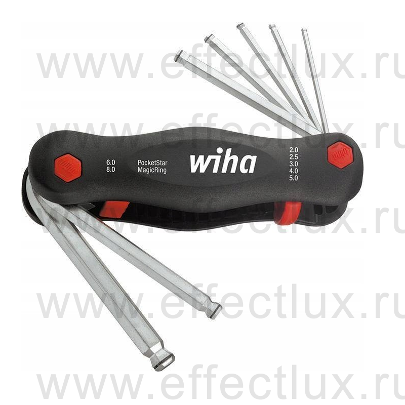 Каталог > WIHA Профессиональный ручной инструмент > Мульти-инструмент > Мультитулы PocketStar® > WIHA 369R P7 Набор штифтовых ключей со сферической головкой в футляре-рукоятке PocketStar® SW2-SW8, MagicRing ®, 7 предметов WI-23031