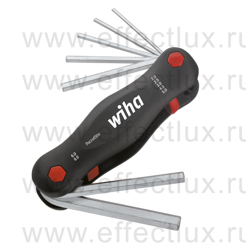 WIHA SB 351 PG7 Набор штифтовых ключей в футляре-рукоятке PocketStar® SW2-SW8, MagicRing ®, 7 предметов в блистере WI-23041