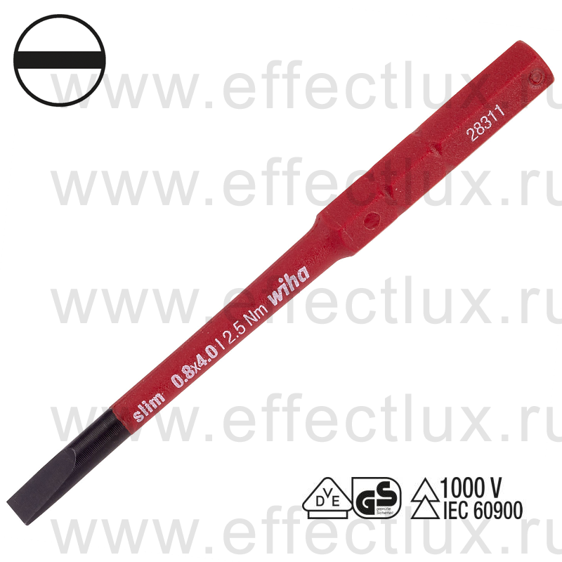 WIHA 2831-10 0,8 x 4,0 Бита изолированная slimBit VDE SoftFinish® electric slimVario®, профиль: прямой шлиц 0,8x4,0х2,50 Нм. WI-34580
