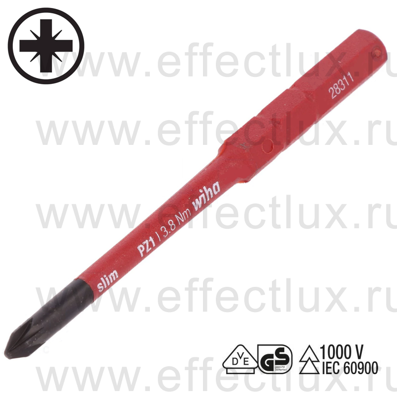WIHA 2831-12 PZ1 Х 75 БИТА ИЗОЛИРОВАННАЯ SLIMBIT VDE SOFTFINISH® ELECTRIC SLIMVARIO®, ПРОФИЛЬ: POZIDRIV PZ1Х75Х3,80 НМ.