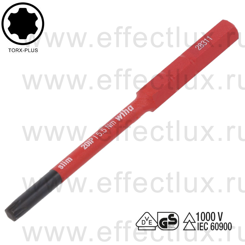 Каталог > WIHA Профессиональный ручной инструмент > Инструменты отвёрточной группы > WIHA Инструменты диэлектрические VDE SoftFinish® electric slimVario® > WIHA Сменные slim-биты для инструментов SoftFinish® electric slimVario® > 2831-16 WIHA Изолированные VDE биты для зажимных винтов SoftFinish® electric slimBit, профиль TORX® PLUS > WIHA 2831-16 20IP х 75 Бита изолированная slimBit VDE SoftFinish® electric slimVario®, профиль: TORX® PLUS 20IP х 75 х 5,5Нм. WI-43150