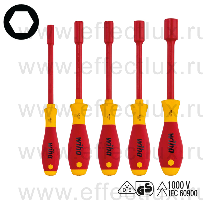 WIHA 322 K5 Набор отверток-торцевых ключей SoftFinish® electric, круглое жало, 5 предметов WI-29466