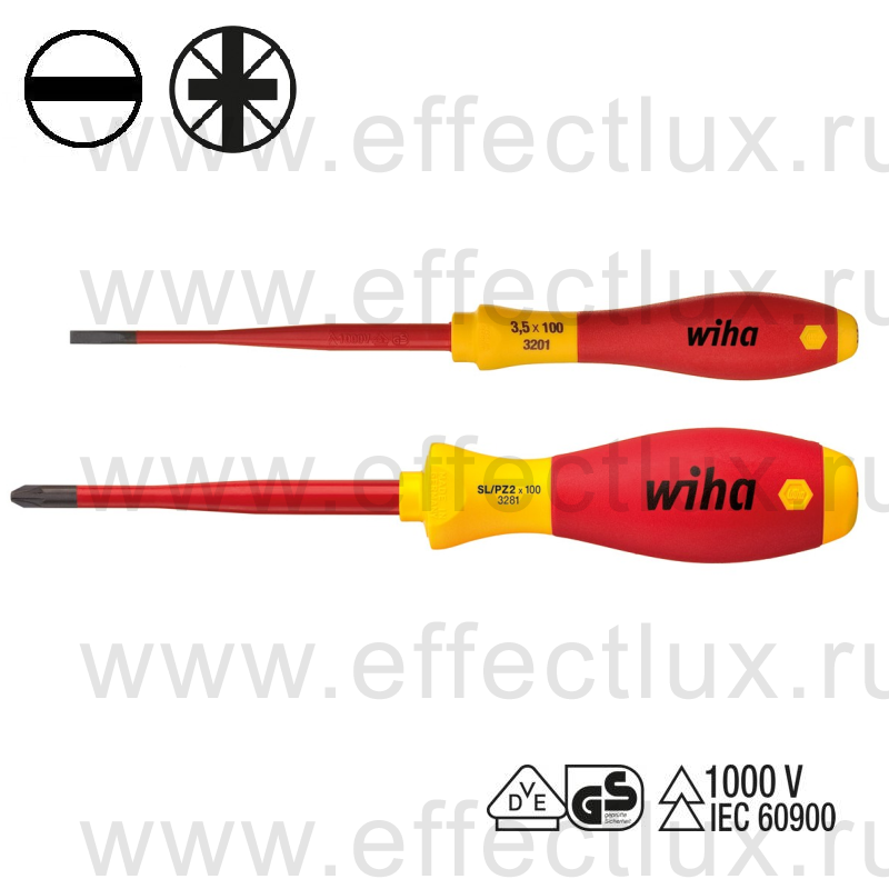 Каталог > WIHA Профессиональный ручной инструмент > Инструменты отвёрточной группы > WIHA Отвёртки диэлектрические VDE SoftFinish® electric > WIHA Наборы отвёрток диэлектрических VDE SoftFinish® electric > WIHA SB 3201 S204 Набор отверток SoftFinish® electric slimFix, SL, PZ PlusMinus, круглое зауженное жало, 2 предмета WI-36333