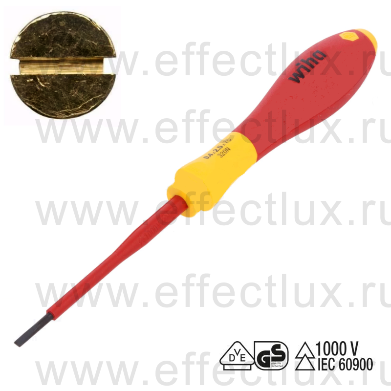WIHA 320N 2.5 X 75 ОТВЁРТКА ДИЭЛЕКТРИЧЕСКАЯ VDE SOFTFINISH® ELECTRIC ПРЯМОЙ ШЛИЦ, 2.5X75 ММ.