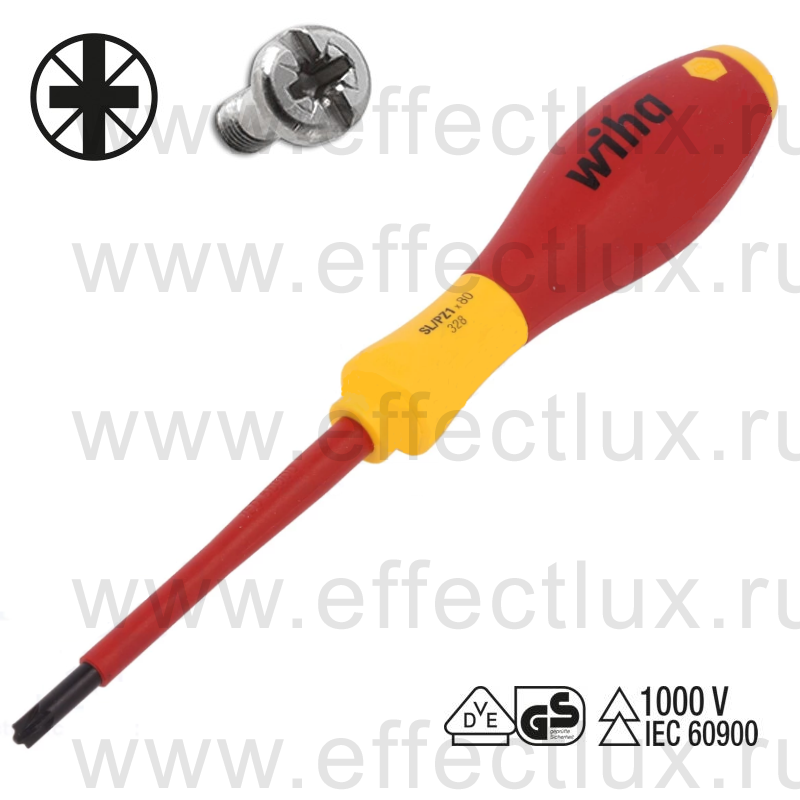 WIHA 328 SL/PZ1 x 80 Отвёртка диэлектрическая VDE SoftFinish® electric, шлиц Xeno PlusMinus/Pozidriv, SL/PZ1x80 мм.