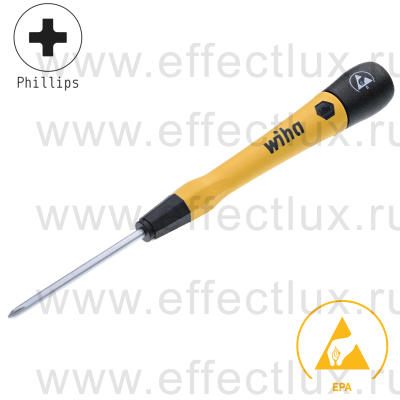 Каталог > WIHA Профессиональный ручной инструмент > Инструменты отвёрточной группы > WIHA Отвёртки для точных работ PicoFinish® ESD > 271P WIHA Отвёртки для точных работ PicoFinish® ESD, профиль: крестовой шлиц Phillips > WIHA 271P PH0 х 50 Микро-отвёртка PicoFinish® ESD для электро-технических работ, профиль: крестовой шлиц Phillips PH0х50 мм. WI-43677