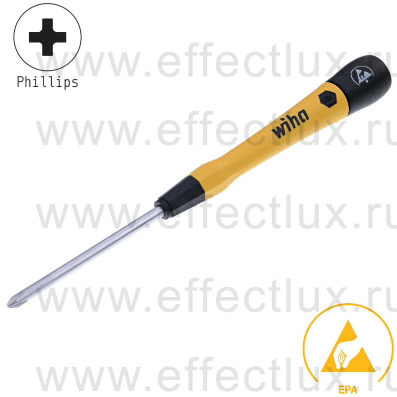 Каталог > WIHA Профессиональный ручной инструмент > Инструменты отвёрточной группы > WIHA Отвёртки для точных работ PicoFinish® ESD > 271P WIHA Отвёртки для точных работ PicoFinish® ESD, профиль: крестовой шлиц Phillips > WIHA 271P PH1 х 60 Микро-отвёртка PicoFinish® ESD для электро-технических работ, профиль: крестовой шлиц Phillips PH1х60 мм. WI-43678