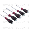 Эргономичная противо-скользящая рукоятка MicroFinish® изготавливается из много-компонентного пластика. С функцией против скатывания. Наличие массивного стального набалдашника. Ударный колпачок, встроенный в рукоятку, позволяет наносить удары и долбить с помощью отвертки.