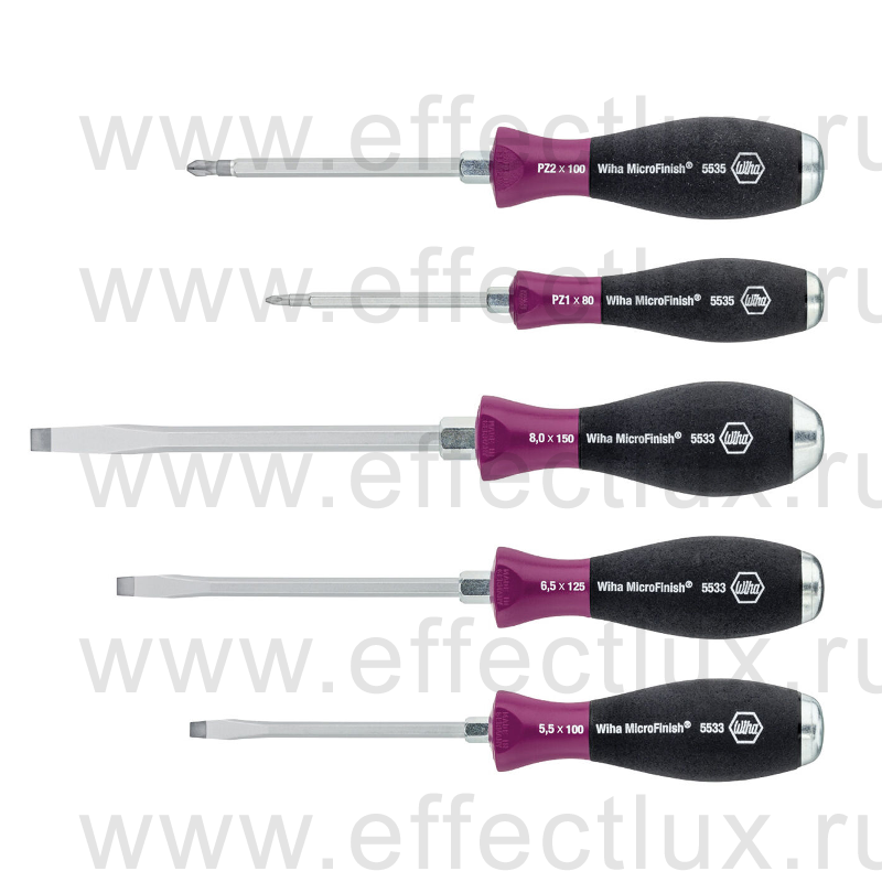 WIHA 5533 ZK5 Набор ударных отвёрток MicroFinish®, Schlitz, Pozidriv, 5 предметов WI-29139