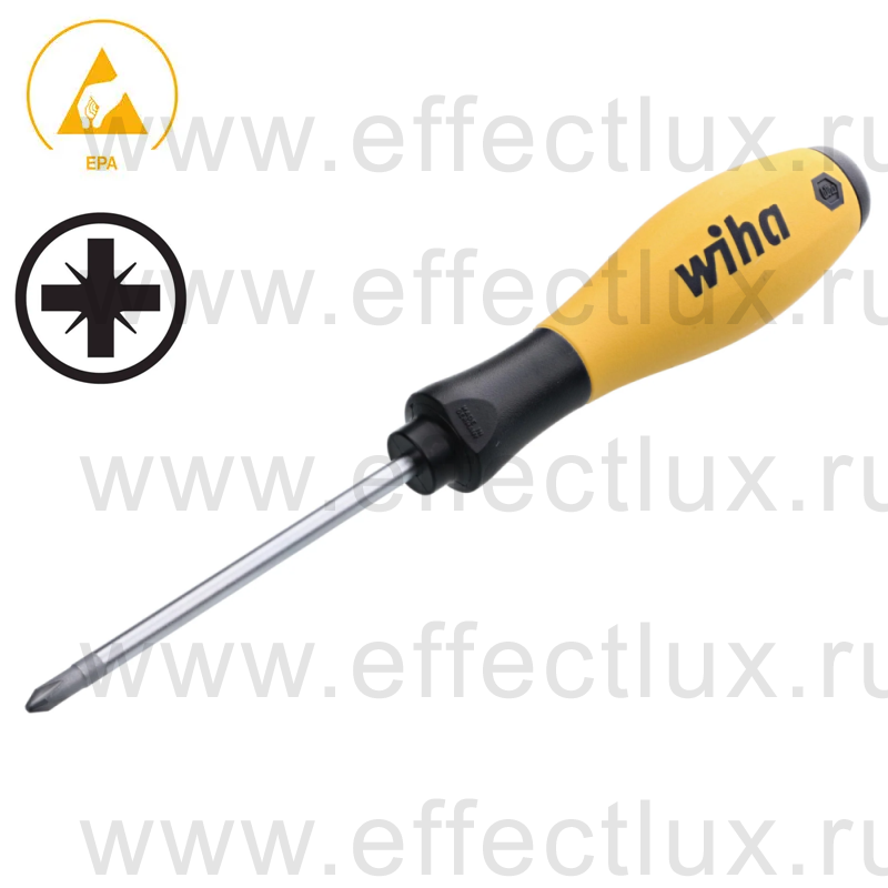 Каталог > WIHA Профессиональный ручной инструмент > Инструменты отвёрточной группы > WIHA Отвёртки SoftFinish® ESD > 313ESD WIHA Отвёртки Pozidriv SoftFinish® ESD с круглым жалом > WIHA 313ESD PZ1 х 80 Отвёртка Pozidriv SoftFinish® ESD, крестовой шлиц, круглое жало PZ1х80 мм. WI-26929