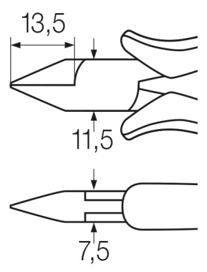 С ловушкой для отрезания концов проволоки. Режущая кромка почти без выступа для отрезания почти заподлицо. Максимальный срок службы режущей кромки благодаря дополнительной индукционной закалке до твердости ок. 64 HRC. С открывающей пружиной. Поверхностное сопротивление 10⁶ - 10⁹ Ом.
