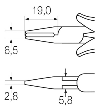 Режущая кромка почти без выступа для отрезания почти заподлицо. Максимальный срок службы режущей кромки благодаря дополнительной индукционной закалке до твердости ок. 64 HRC. С открывающей пружиной. Поверхностное сопротивление 10⁶ - 10⁹ Ом.