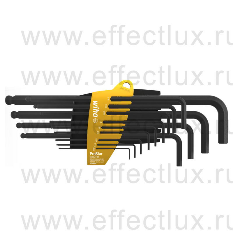 WIHA 369 SZ13B Набор шестигранных штифтовых ключей HEX со сферической головкой в держателе "ProStar", SW1/20"-SW3/8" 13 предметов WI-24189