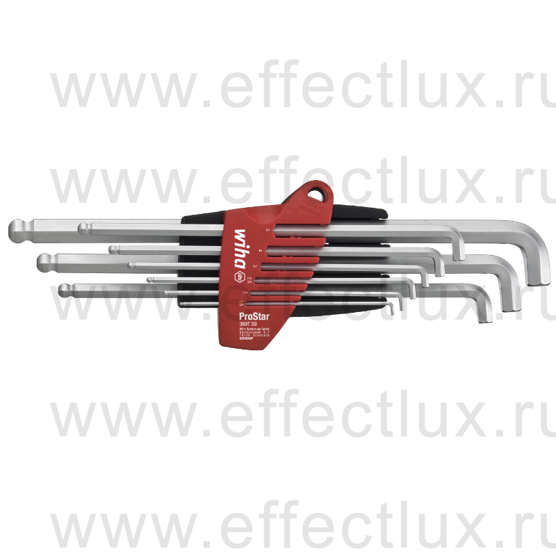 IHA 369T S9 Набор шестигранных штифтовых ключей Stubby HEX со сферической головкой и коротким наконечником в держателе "ProStar", SW1,5-SW10 мм. 9 предметоВ